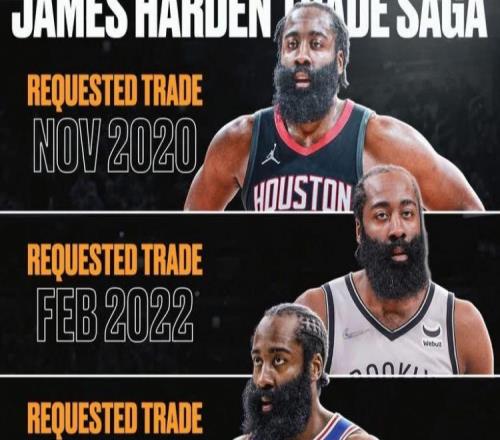 哈登被曝申请离队美媒晒四次交易申请图:哥们儿在哪都不开心 -